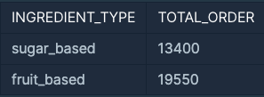 SELECT INGREDIENT_TYPE, SUM(F.TOTAL_ORDER) AS TOTAL_ORDER